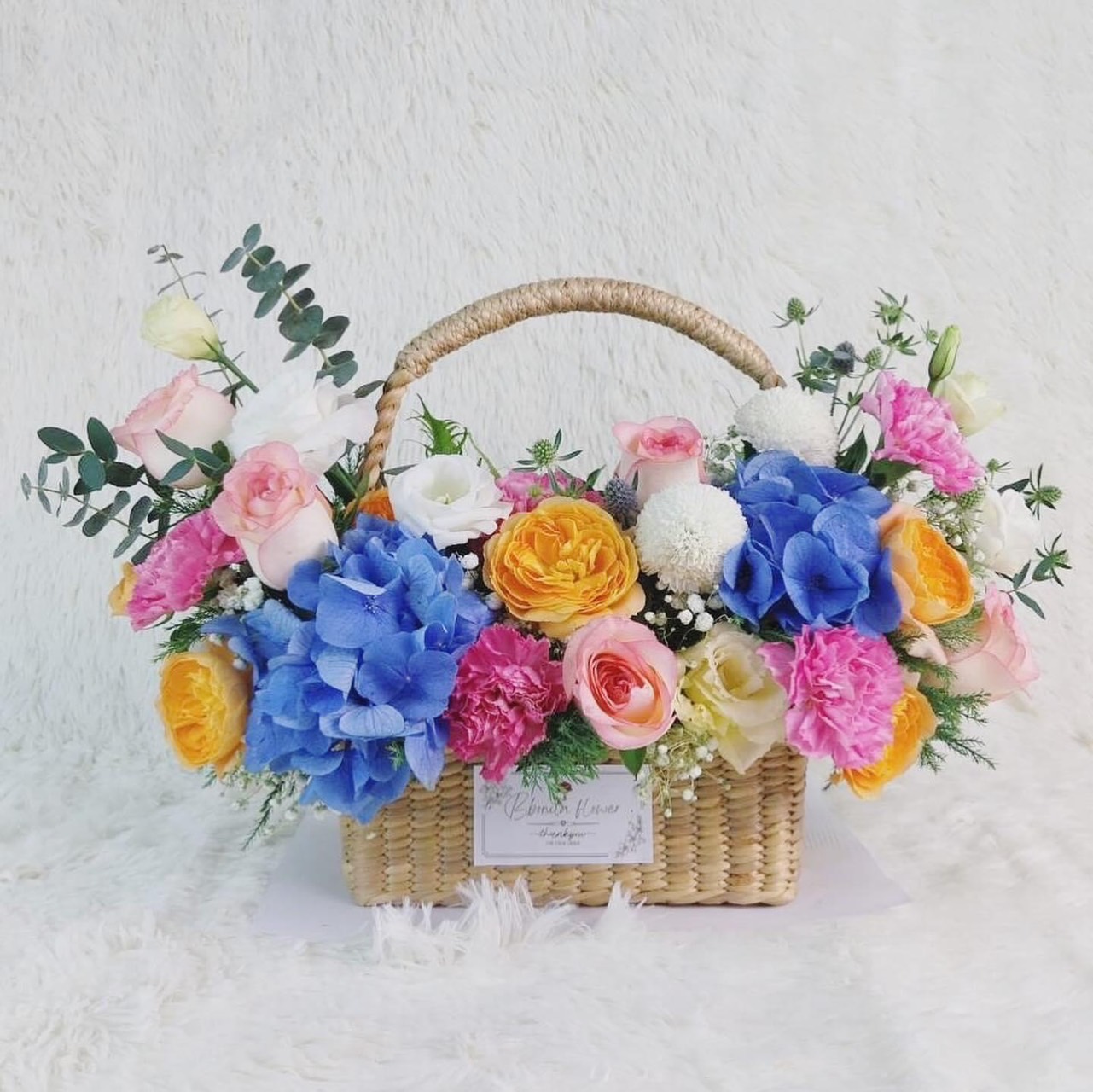 กระเช้าดอกไม้ จัดวางดอกไม้แน่นๆ อย่างพิถีพิถัน เหมาะมอบแสดงความยินดี ในวันเปิดกิจการใหม่ วันเกิด วันพิเศษ หรือให้ในโอกาสเยี่ยมไข้ ให้กำลังใจ